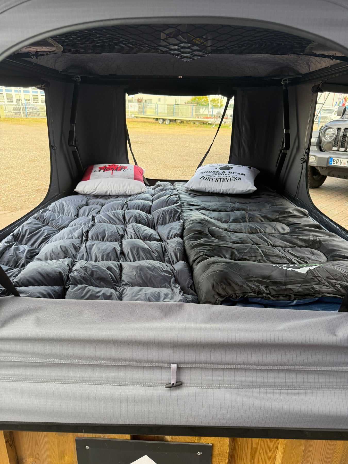 Das Dachzelt ist in einem einwandfreien Zustand und hat außer ein paar Gebrauchsspuren keine Beeinträchtigungen. Das Zubehör wie Thermo Inlay und Daunendecke ist unbenutzt und wird im Neuzustand übergeben.
