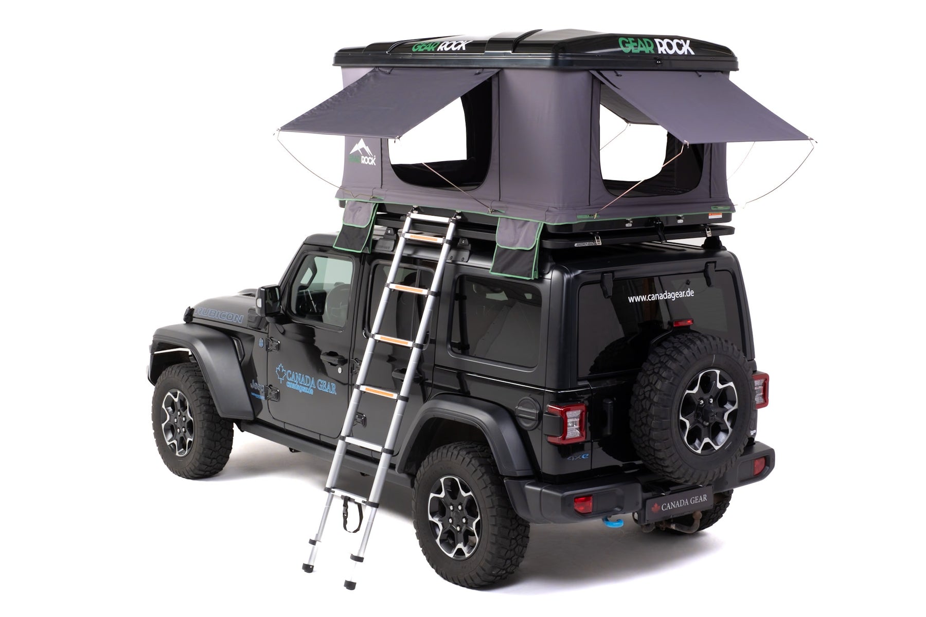 Hier bieten wir das GEAR ROCK Kootenay an. Es handelt sich um das 4-Jahreszeiten Paket, mit großer Zubehörausstattung. Alle Infos hierzu gibt es unter GEAR ROCK Kootenay - Hartschalen Dachzelt