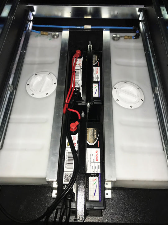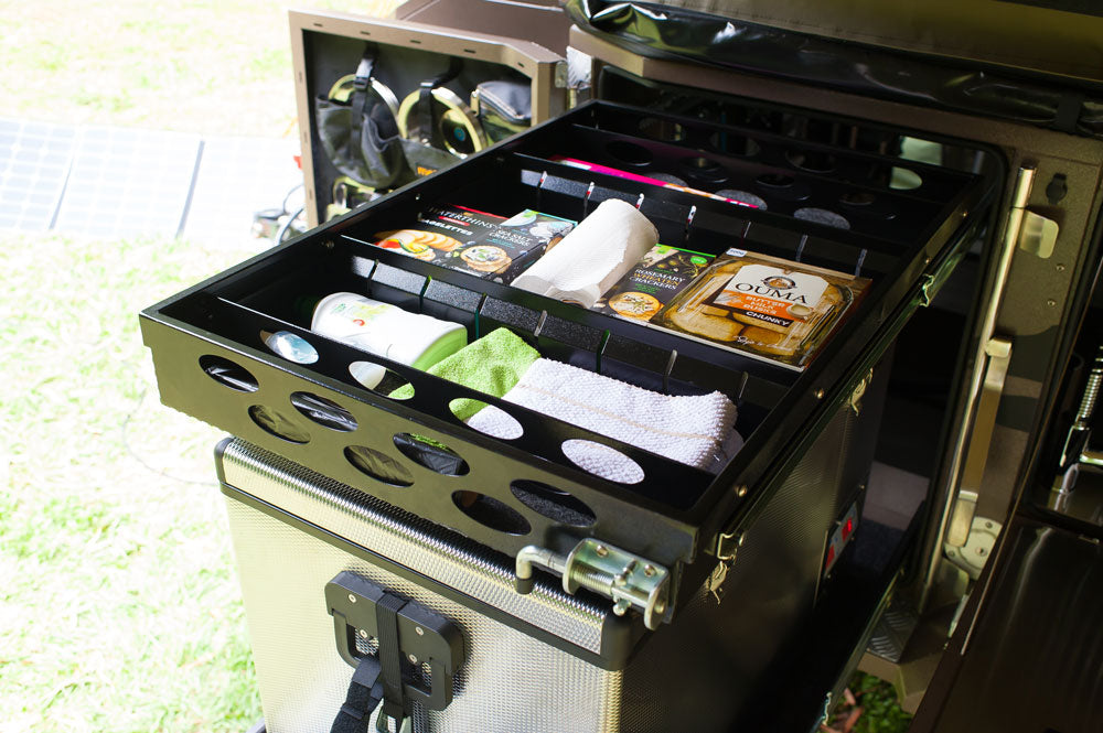 • 2x 65ltr Poly-Wassertanks (intern im Bauch des Anhängers montiert)